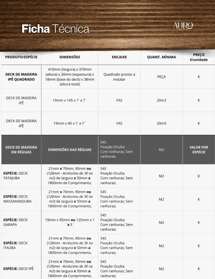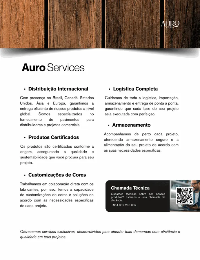 Explore o universo Aurowoods — Madeiras nobres, soluções sustentáveis e design exclusivo.