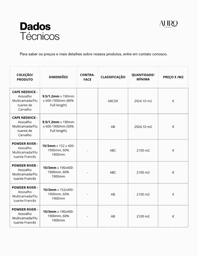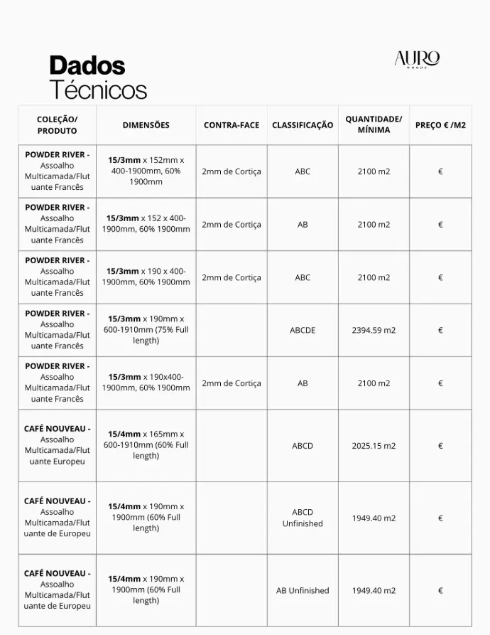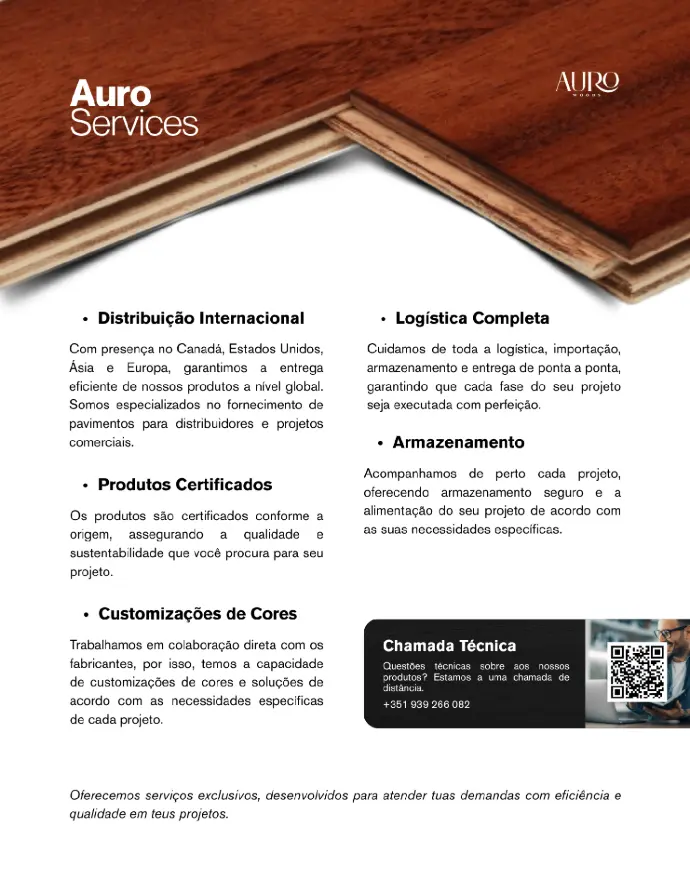 Entre em contato diretamente pelo e-mail: info@aurowoods.pt
